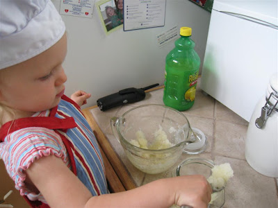 O and I really enjoyed making exfoliating sugar scrub. I love the fact that its all natural, and it smells great! We used Burts' Bees Apricot Oil since I didn't have any essential oils, and it smells good enough to eat (and I admit that I tasted it when O wasn't looking...not bad).