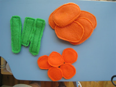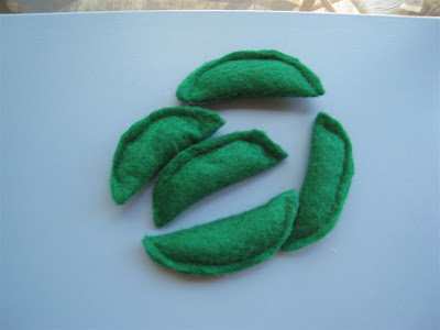 pea pods- I made the stuffing into tight little balls so it feels like peas inside the pea pods