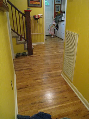 O loves to be involved in everything we do, so we have started teaching her to do chores. She enjoys helping unload the dishwasher, picking up Gracie's leftover treats, picking up her toys and books, sorting diapers (inserts go in the dryer and pockets on the line), and sweeping. Lately, she's even been helping me push the vacuum. Today when I was sweeping the den she came in from playing on the porch and brought me the dustpan. I was so surprised, and she was so proud!