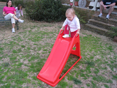 Auntie Melanie, Uncle Jonathan, and Marg brought a slide over to G & G's house, and O learned to climb a ladder and slide down the slide by herself! O was a little unsure of where to put her feet, but Auntie Melanie (the Pediatric Physical Therapist) helped her out. She loved being able to play independently on the slide, and we stayed close by in case she lost her balance while standing at the top. .JPG)