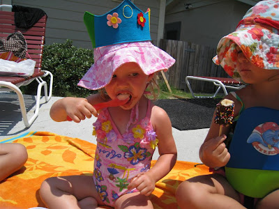 O took a short nap on the way to the water park. She was very excited about her "choc-choc" banana and the delicious homemade peach ice-cream that Aunt Mem made. We played in the pool and relaxed in the lazy river for a fun-filled 4 hours. What a great day!