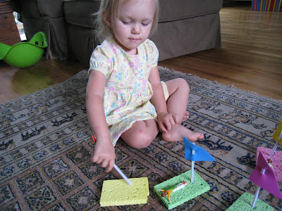 O and I made sponge and straw boats this morning. It was easy, fast, and fun!