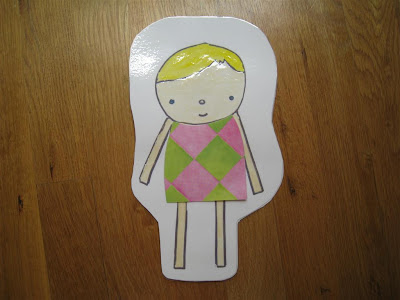 I traced around the doll to create an identical back, so the card could open. I taped them together using white labels.