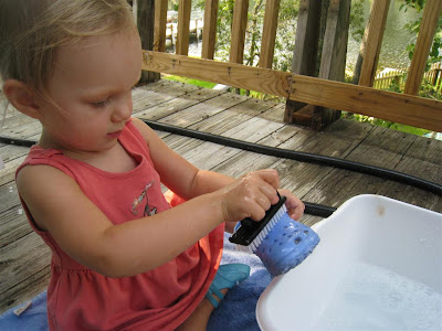 O had a great time, and I was excited that we accomplished a few tasks that have long been on my lists. In addition to 3 pairs of shoes, we also washed O's outside baby buggy and a rubber placemat that's been in the garage for several months.