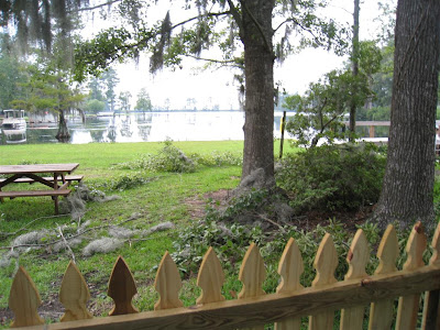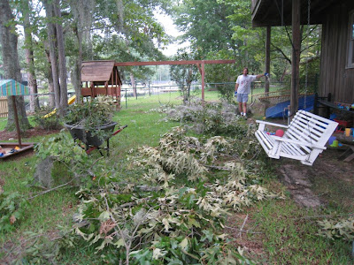 Don't buy your husband a telescoping limb trimmer for his birthday! Obviously, Elliott had way too much fun with his this past weekend :) It looked like a tornado hit our yard! The crazy thing is that other than the destruction on the ground, you can't really tell he cut any limbs.
