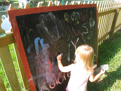 This paint worked much better on O's chalkboard, and we had lots of fun! (aside from the fact that I was attacked by fire ants in the middle of the process! I'm just glad that they got me and not O!)