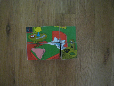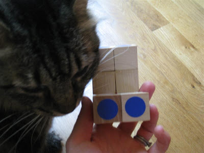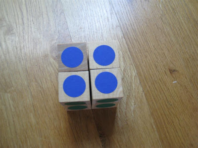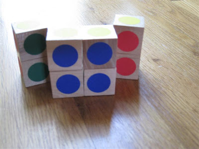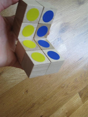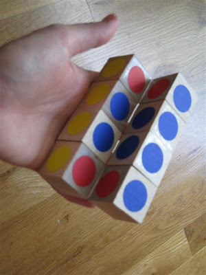 The cube was surprisingly simple and fast to make. I think it took around 15 to 20 minutes, and most of that was spent trying to find the stickers. Elliott was very impressed, but I haven't shown it to O yet. I just hope she won't try to pull the blocks apart!