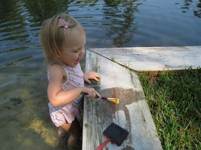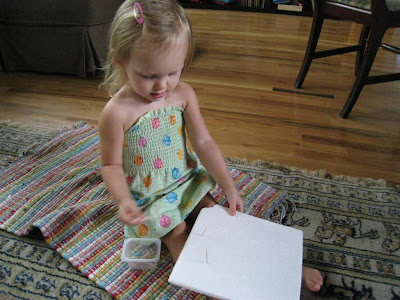 O enjoyed painting with the watercolors, but after 4 paintings she said "O tired. Going to lay on the couch. Need blankie." I got her down from the kitchen helper, and she acted worn out and tired and laid on the couch with a blankie over her for about 2 seconds :)