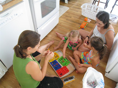 I recently purchased the silicone number and letter ice trays from the Let's Explore Shop (among LOTS of other things!), and we are very happy with them. The first thing we've made were crayons! I shouldn't say "we" since I had nothing to do with it other than providing the trays and crayons :) Unfortunately, we used cheap crayons, so the wax floated to the top and the color sank to the bottoms. It was a learning experience, and we've gotten Crayola brand crayons to use next time :) My mom, sister, O, and my niece had fun peeling the crayons (right, Melanie?) and putting the crayons in the tray. I'll show the finished product after I make the next batch :)