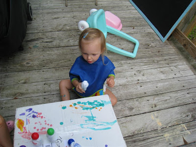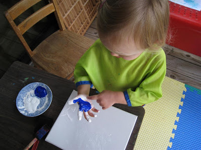 She tried to make handprints and seemed a little dismayed when it didn't work. She looked at me sadly and said "not work!"