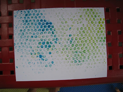 I put the paper on top of the bubble wrap, and she loved pressing it (especially since she was making handprints on the back of the paper!).