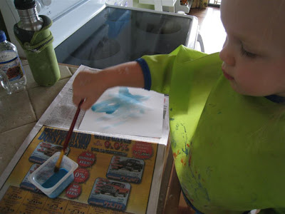 O and I made homemade watercolors which were inspired by this post at Dim Sum, Bagels, and Crawfish.