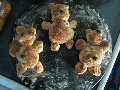 Yesterday I was thinking that I would try to make cinnamon bread with our leftover dough from pizza night, so when I saw Megret's post about Teddy Bear Bread I knew that would be the perfect way to do it!