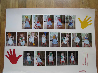 Here's her 2nd masterpiece of the day! Her footprints did not show up as clearly as her handprints have, and I'm not sure why. We used a different kind of paint so that may be it, or we might have just tried to make the footprints too soon (before the paint was tacky).